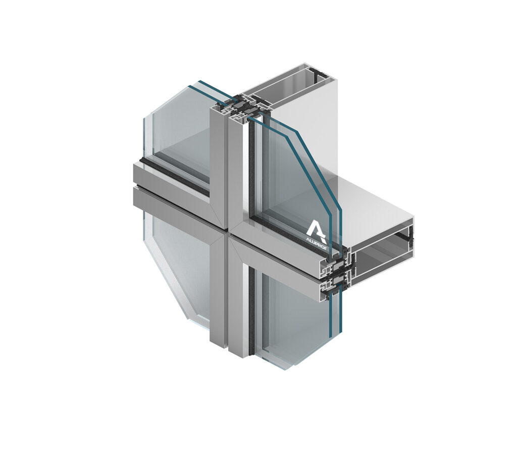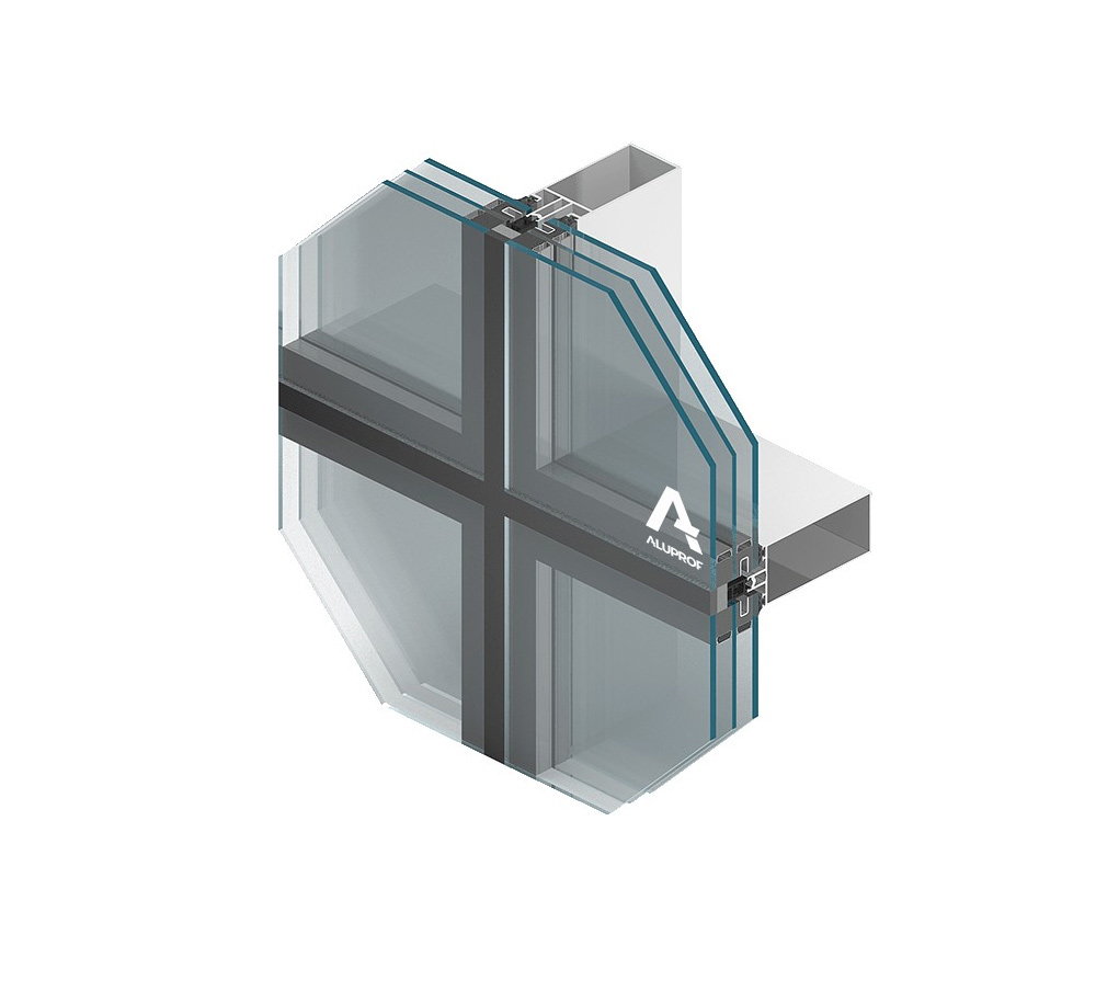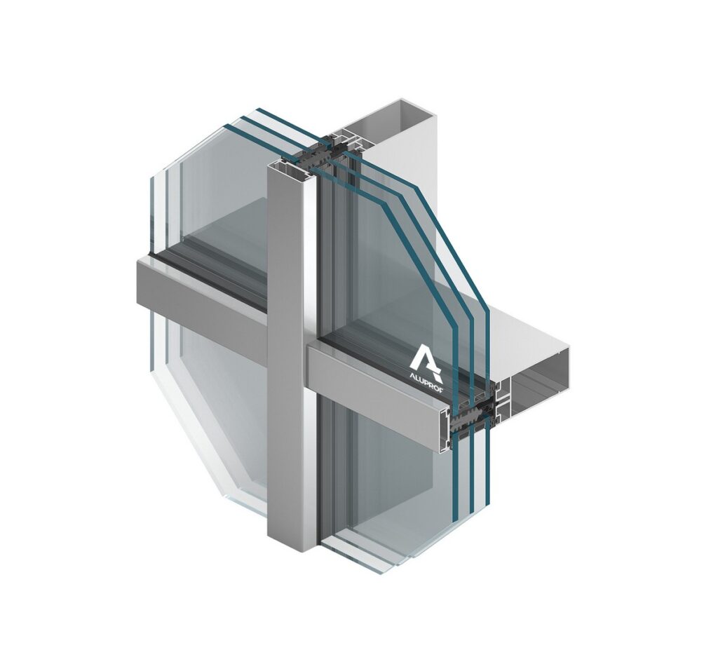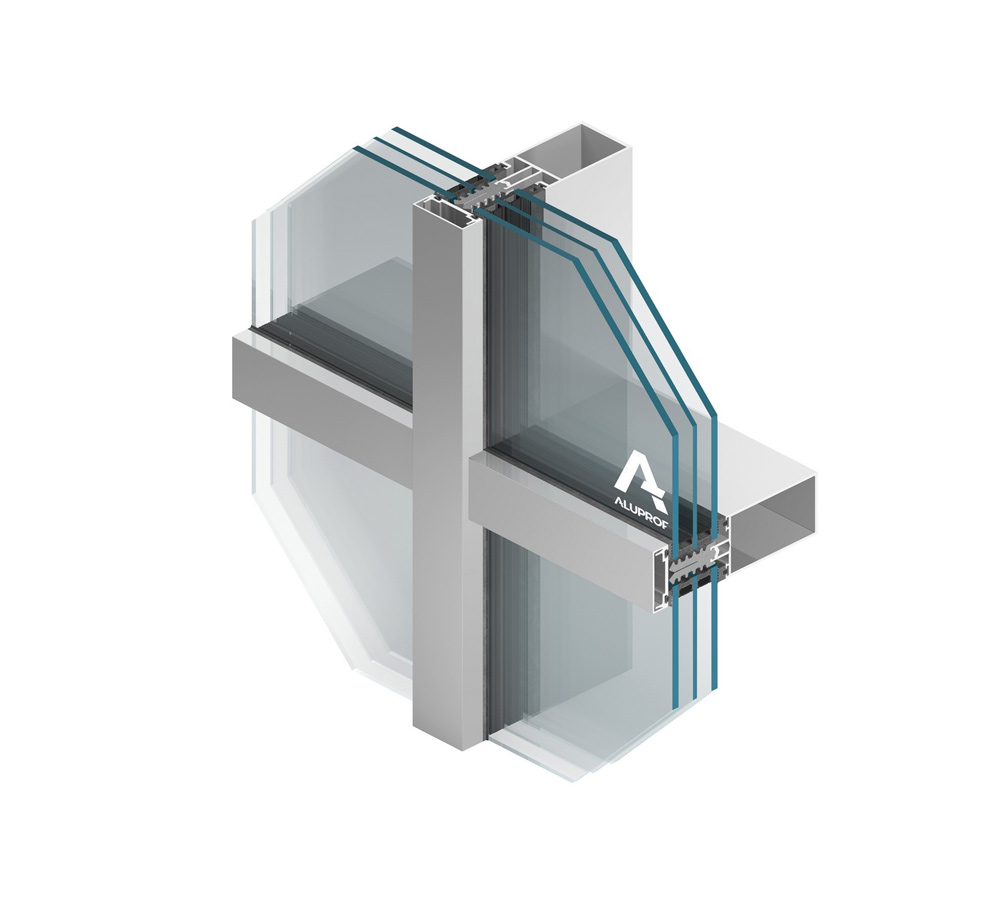 trójkomorowa budowa profili, potrójny, zespół uszczelek oraz 3-poziomowy, kaskadowy system odwodnienia. Dzięki temu fasada osiąga współczynnik Uf już od 0,50 W/(m²K), bardzo wysoką wodoszczelność RE 1800 Pa i odporność na obciążenie wiatrem 2700 Pa. Maksymalny ciężar szyby wynosi tu ok. 600 kg, przy grubości szklenia do 64 mm.